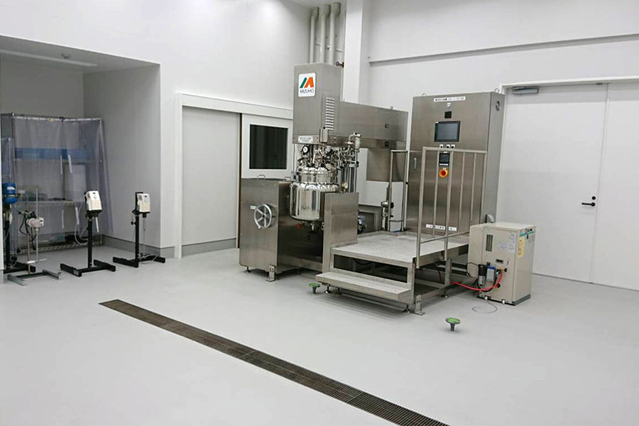 コスメのバルクを製造します。自社工場内でひとつひとつ心をこめて丁寧に作っています。